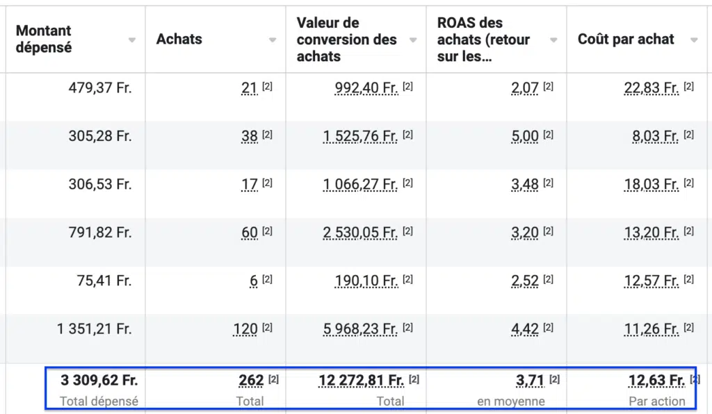 Par ailleurs, pour assurer un ROAS (retour sur dépenses publicitaires) sain, un panier moyen supérieur à 100 CHF / € est idéal pour absorber les coûts d'acquisition tout en dégageant une marge confortable.